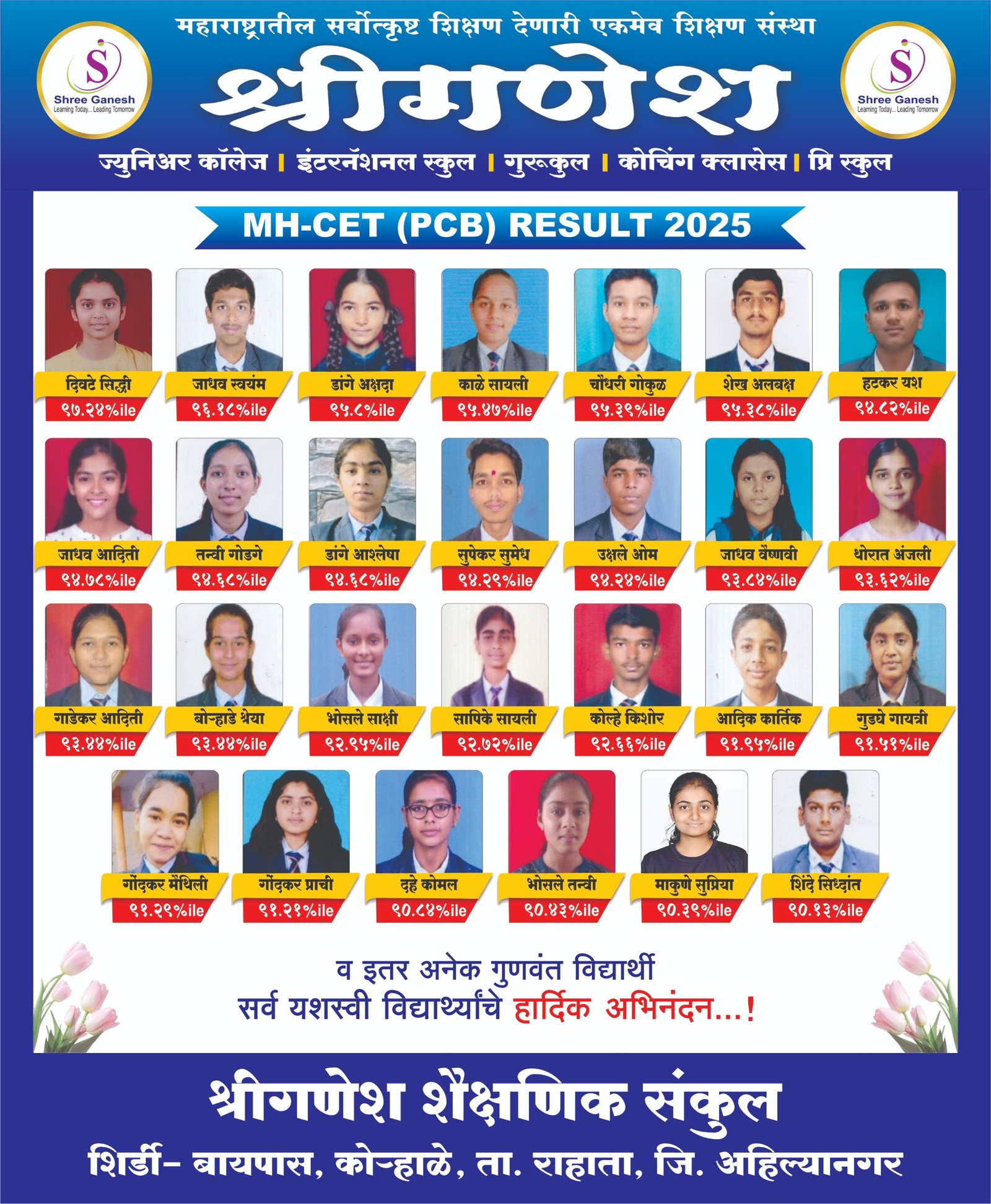 Shree Ganesh Junior College offers 11th & 12th Science and Commerce with integrated coaching for competitive exams. We follow the SHREE GANESH PATTERN academic model that prepares students for both Board Exams and National/State-Level Entrance Exams.